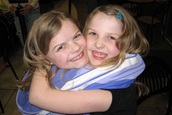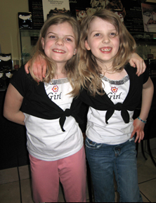 The girls giggle feverishly and embrace. They decide it’s time to run to the bathroom and change in to their matching flower girl shirts.