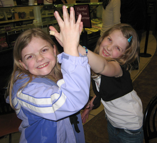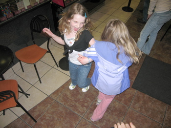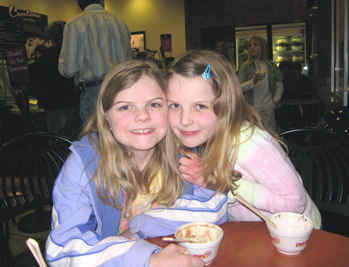 Renee, Brett, Tyler, Rylie, and I all met at Cold Stone for ice cream. Rylie & Tyler thought it was to celebrate Rylie’s birthday which happened to be March 2nd. After ordering some yummy ice cream, Tyler informs Rylie that there were flower girl tryouts last weekend. She’s whispering (well, sort-of) that Rylie should to ask me to “try out”. Rylie feels much to shy, so Tyler begins to ask who I’ve selected for a flower girl and if there are still tryouts. After a long conversation, she manages to ask me if our flower girls would be her and Rylie. After I said, “Well, I’m not sure…you guys might be too old” She informs me that, “WE’RE ALL YA GOT!” 🙂 Renee proceeds to look up the average flower girl age on her phone and we torment them a little longer