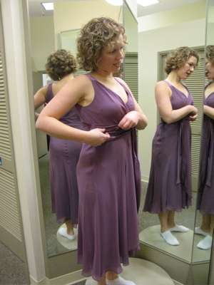 Even though I called Macy’s and they said they didn’t carry the dress I was looking for… We got there and they did have it! Renee tried on the dress (wrong color obviously). It looked really nice. It is nice and flowy, and has a satin trim on the waist, which I think will look great with my dress.