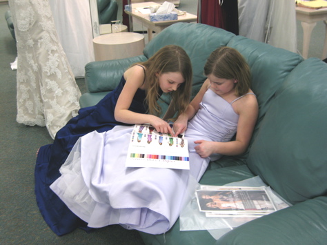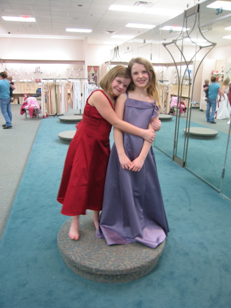 Today Mom, Renee, Debi, Tyler, Rylie, and I (what a crew!) went David’s Bridal so the girls could try on flower girl dresses.