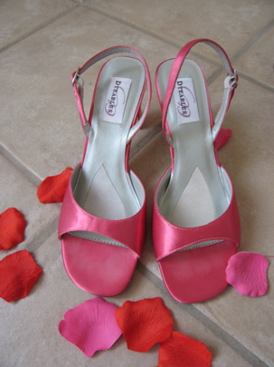 I was going to let it be a suprise… but I’m too excited! Today, I found the perfect shoes! I was at the bridal shop with Rachael, and they had the perfect PINK shoes! They match the flowergirl dress (the only other pink item in the wedding party) perfectly and are very comfortable. Win Win!