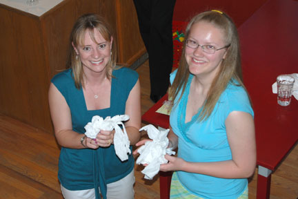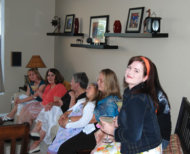 It all started at 6:30 May 25th where I was welcomed many of my fabulous friends and family. Renee’s house was cozy and festive, and the display of Asian inspired dishes was adorable. Sushi, herbed chicken, salad with mandarin oranges, and Asian pear slaw were just a few of the dishes that delighted the tummies of all the ladies there! Debi and Rachael ventured into sushi, and thought it wasn’t half bad. Rylie and Ashlyn still are pondering it I think!