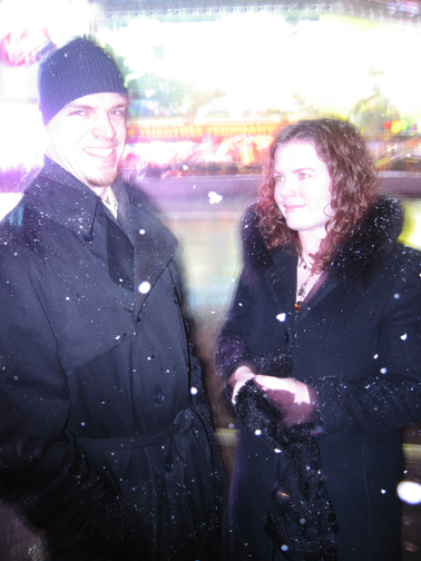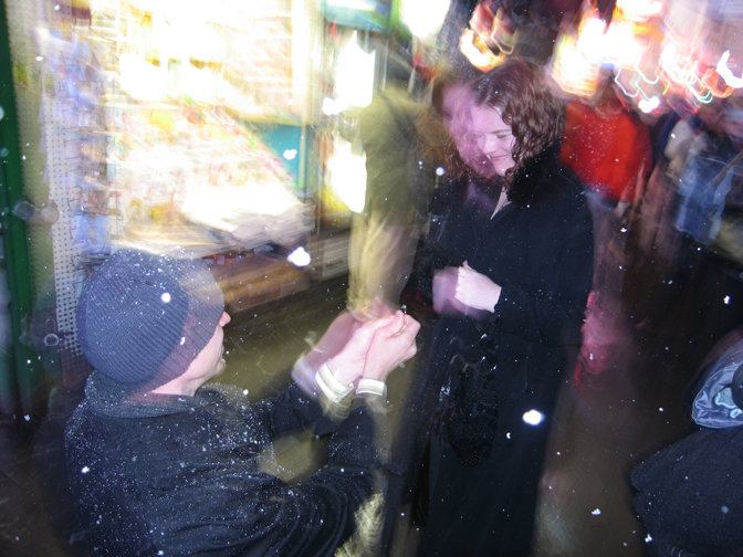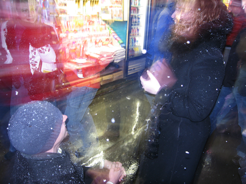 After dinner, Brett & Kevin were insisting we head to Manhattan while Jen & Gloria were thinking it was a little nuts to drive on NYC slippery roads with a new baby. After ducking into Toys ‘R’ Us for a little warmth and for Brett to “find a bathroom” (or perhaps get his face on a billboard to say, “Jennifer Will You Marry Me?) we headed back out to take photos in the snow.